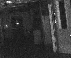 Shadow figures are black areas of almost fog like or veil like appearance in the shapes of blobs or in the shape of a person outline. In this night vision camera image, you can see a black misty/fluid-like anomaly on the radiator going up the wall and ceiling. Shadow figures can be small or large and are generally terrifying to experience. They are much less reported or recorded on camera than light anomalies. There are reports of people seeing them with their own eyes, usually out of the corner of their eyes as movement or as something dark blocking visible light (AKA something walking in front of a light source). Shadow figures have been recorded on both regular digital cameras and night cameras, again making me believe that IR light energy may have something to do with their appearance to us on these devices.