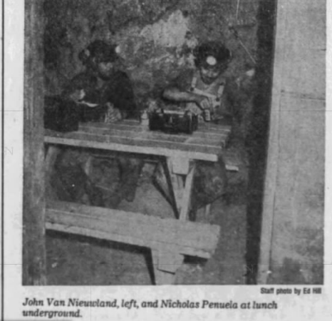 They make me aware of using water in hoses to find the mineral as well as water being pumped out of the shafts. They make me aware of eating down in the shafts. They basically just want to tell me all about their day in the mines. What they did and how they did it.